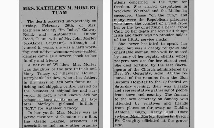 Tuairisc ar bhás mo sheanmháthar a d'fhoilsigh an Tuam Herald sa bhliain 1965